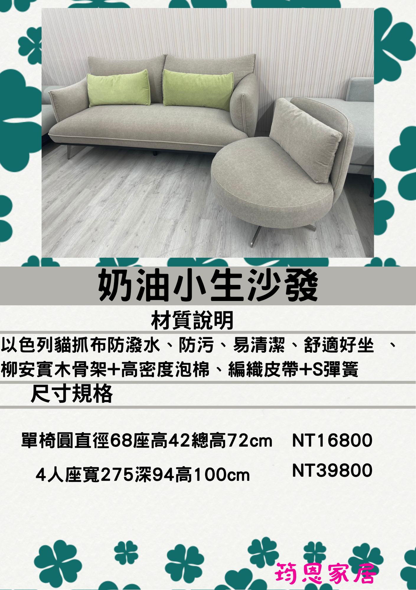 以色列貓抓布防潑水、防污、易清潔、舒適好坐、柳安實木骨架+高密度泡棉、編織皮帶+S彈簧