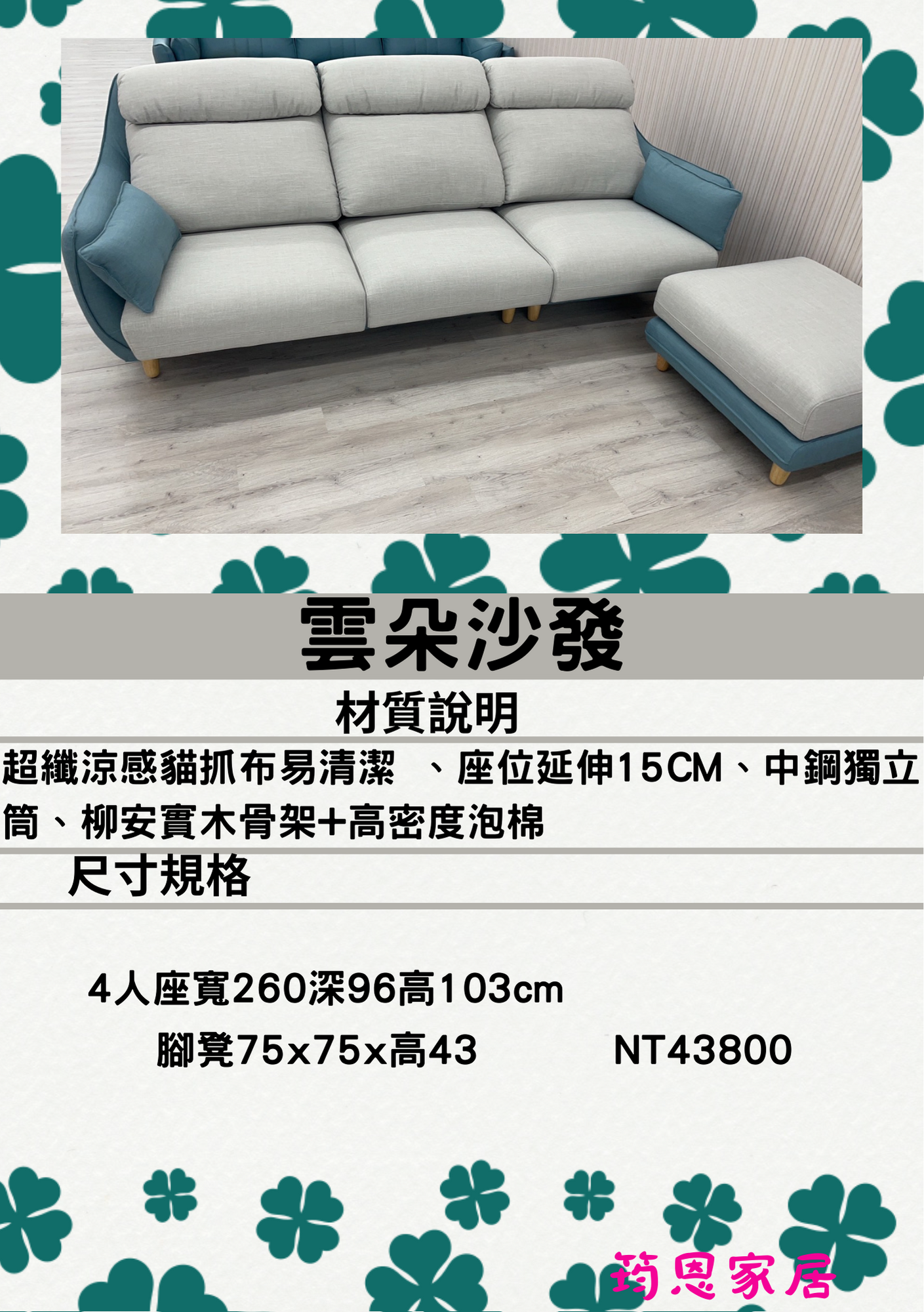 4人座(寬260深96高103cm)、腳凳(75x75x高43)