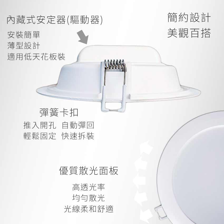 產品尺寸:Ø165x53mm 開孔150mm 內藏式安定器