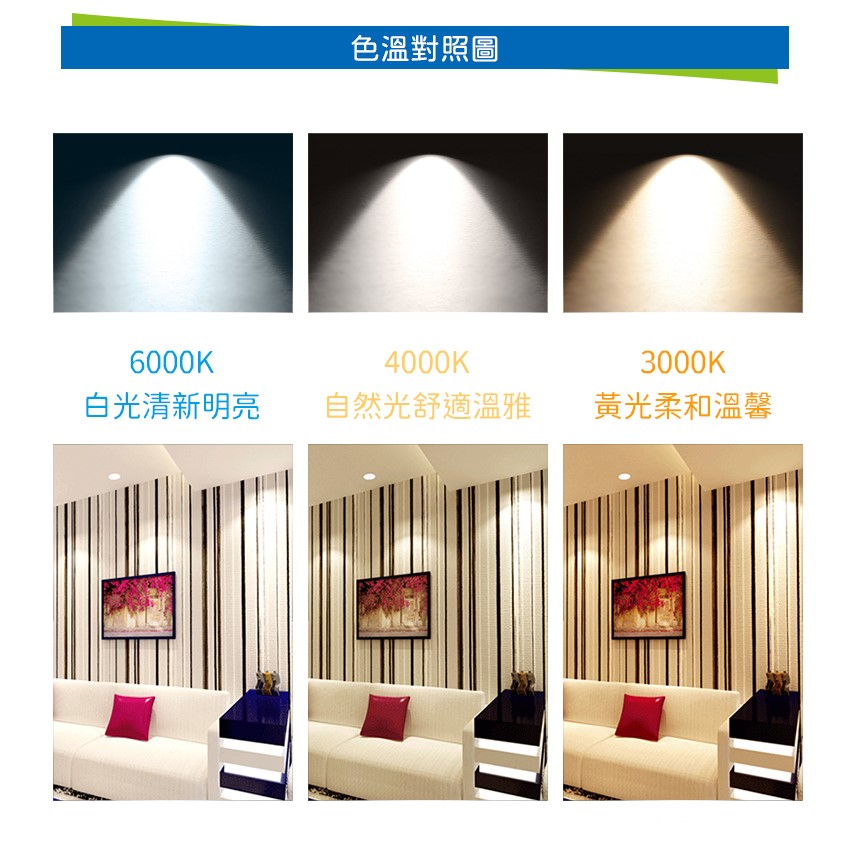 色溫:白光(6500K)、自然光(4000K)、黃光(3000K)