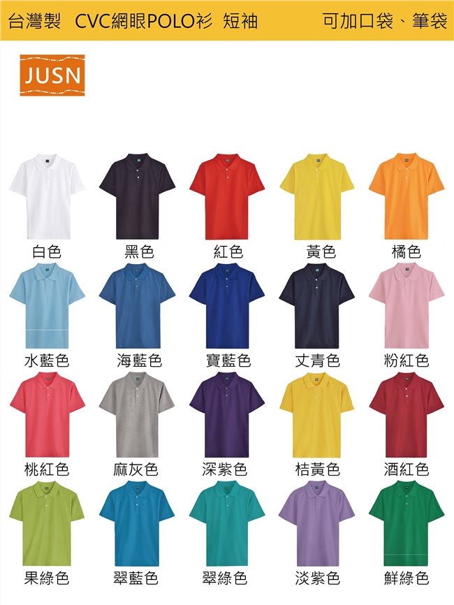 台灣製 網眼CVC棉POLO衫 共20色 8號~5XL