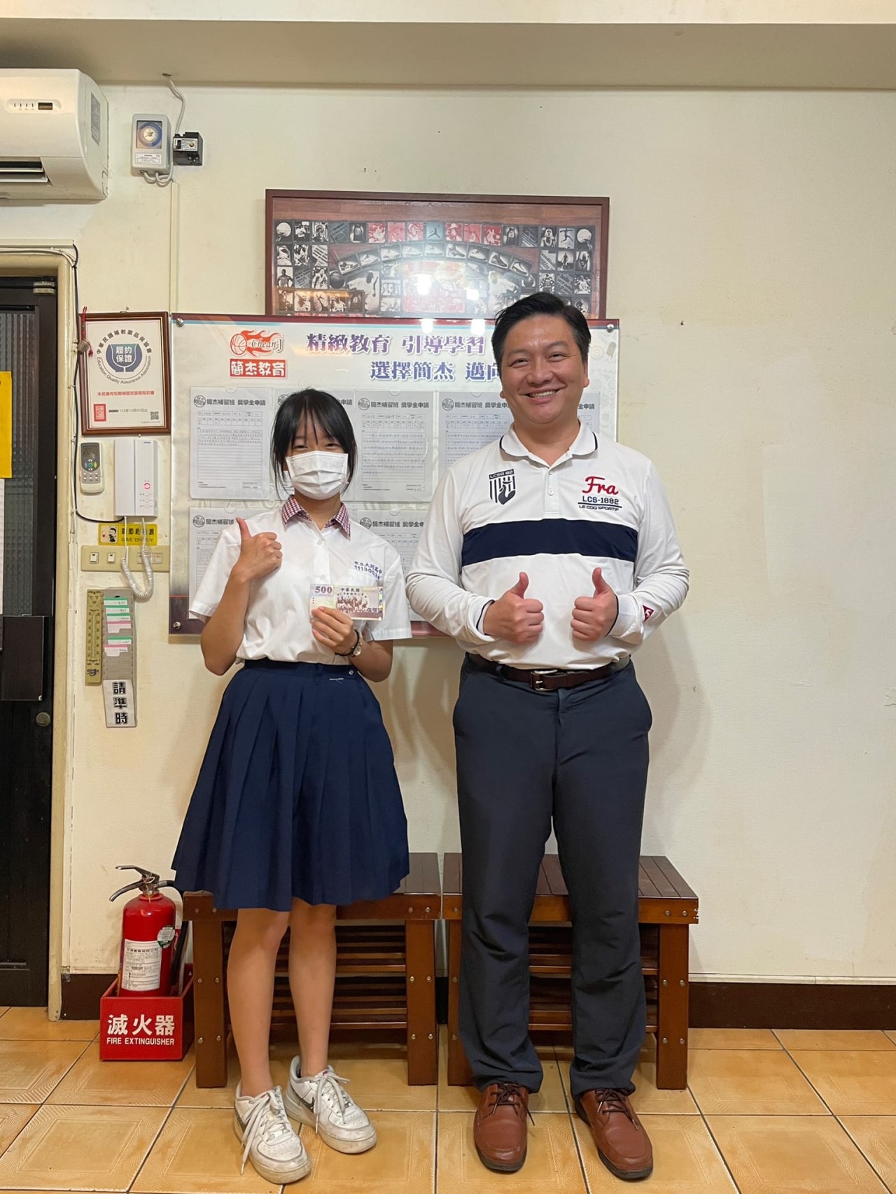 私立延平國中 數學28分進步到100分 林*峰 光興國小市長獎畢業