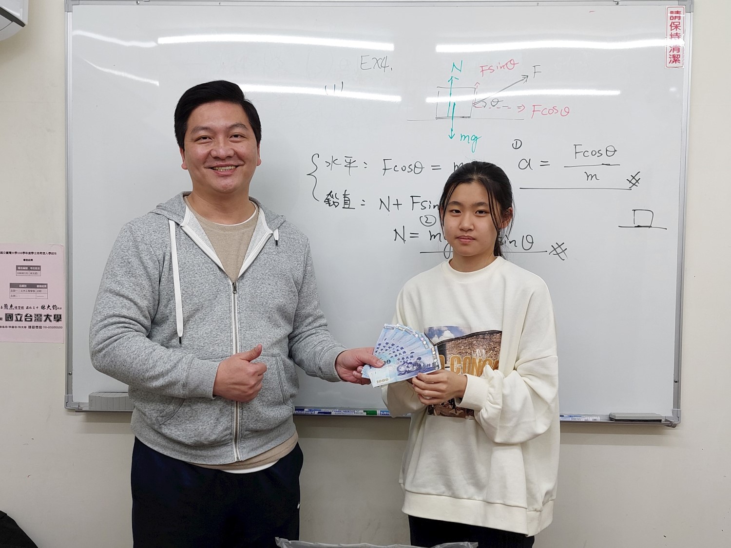 私立 薇閣國中九年級郁婷理化 47~90 進步43分(榮譽直升)