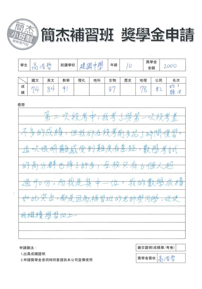 台北市前三志願高中---成功高中何*瑋 數學從28分進步到84分