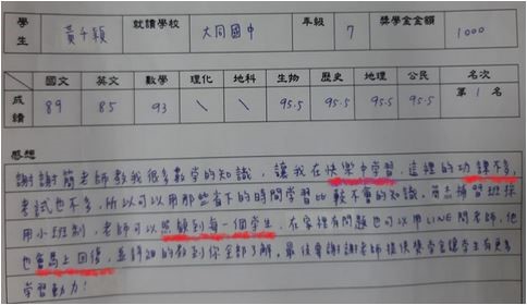 從國中數學不理想到段考100分常勝軍是來自簡杰數學培訓。