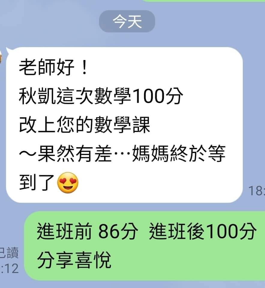 數學最低分:蘭雅國八楊同學 73分(新生,進班前60分)