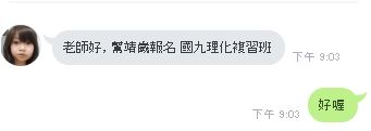 私立 薇閣國中九年級郁婷理化 47~90 進步43分(榮譽直升)