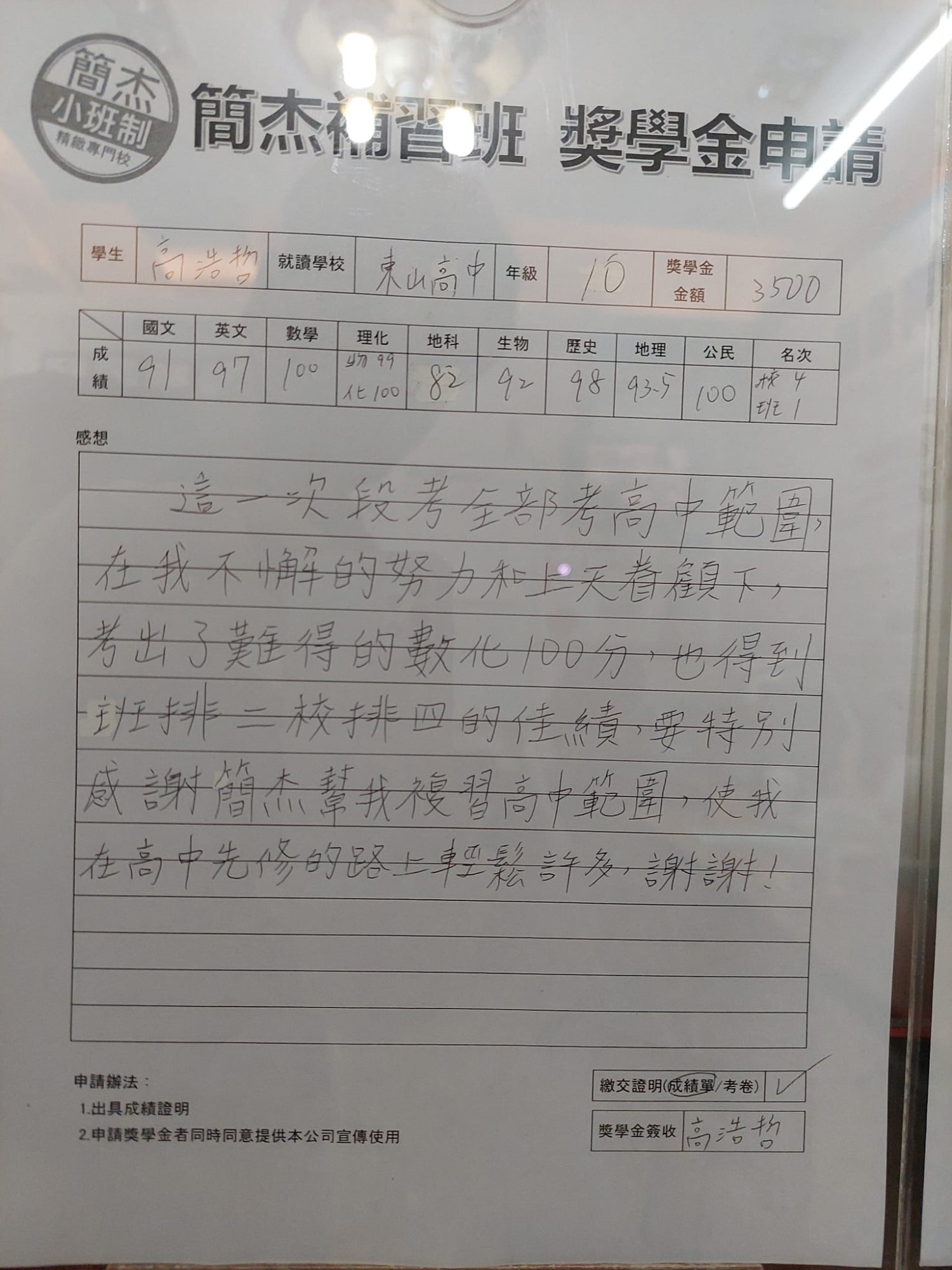 簡杰補習班有專業私中直升高中升大學班 歡迎 康橋 東山 華興 時雨 等名校加入