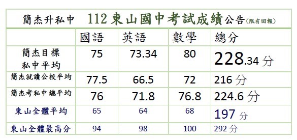 數學最低分:蘭雅國八楊同學 73分(新生,進班前60分)