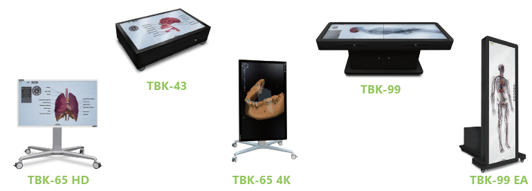 ASCLEPIUS數位醫學影像解剖桌提供三套軟體系統,分別為真實DICOM資料處理RADIOLOGY(人體剖析規劃)軟體系統、數位人體教學ANATOMY(解剖學)軟體系統及圖像教學應用HISTOPATHOLOGY ATLAS(組織學地圖集)系統,為一個多功能應用的影像應用平臺,透過手指輕觸碰即可進行醫學影像的處理應用、人體解剖護理教學授課或病理圖像特徵解說,可以透過簡易及流暢的操作技巧,沉浸在視覺化的場景中進行數位化影像教學授課與學習。