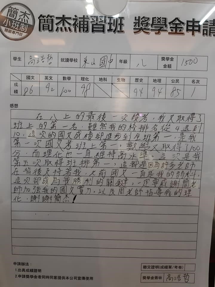 6. 私校國中外考培訓 簡杰國中補習一路補習成績優異拚大學! 例如:東山國中 楊*樂考取成功高中//衛理女中 簡*綺考取中山女高....薇閣國中段考成績優異