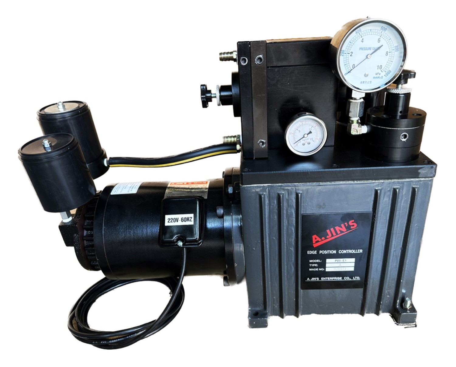功能:氣油壓式自動對邊機(EPC),主要應用於修正卷筒物收料及放料時左右偏離的現象。 此機器可自動地修正卷筒物正確的邊緣位置,使卷筒物在運作中始終保持在整齊正確的位置上。