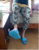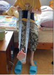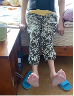 28歲就罹患類風濕關節炎的千奶奶,今年六月突發心肌梗塞入急診,手術完後被緊急送回開刀房搶救,歷經電擊、插管了20多天,在加護病房中聽到醫師準備對她進行氣切,千奶奶靠著無比堅強的意志力,在ICU加護病房內積極自主復健,最終得以成功拔管轉到病房。住院近兩個月,7月底出院時,體重只剩30公斤,完全沒辦法走路,包尿布24小時臥床。