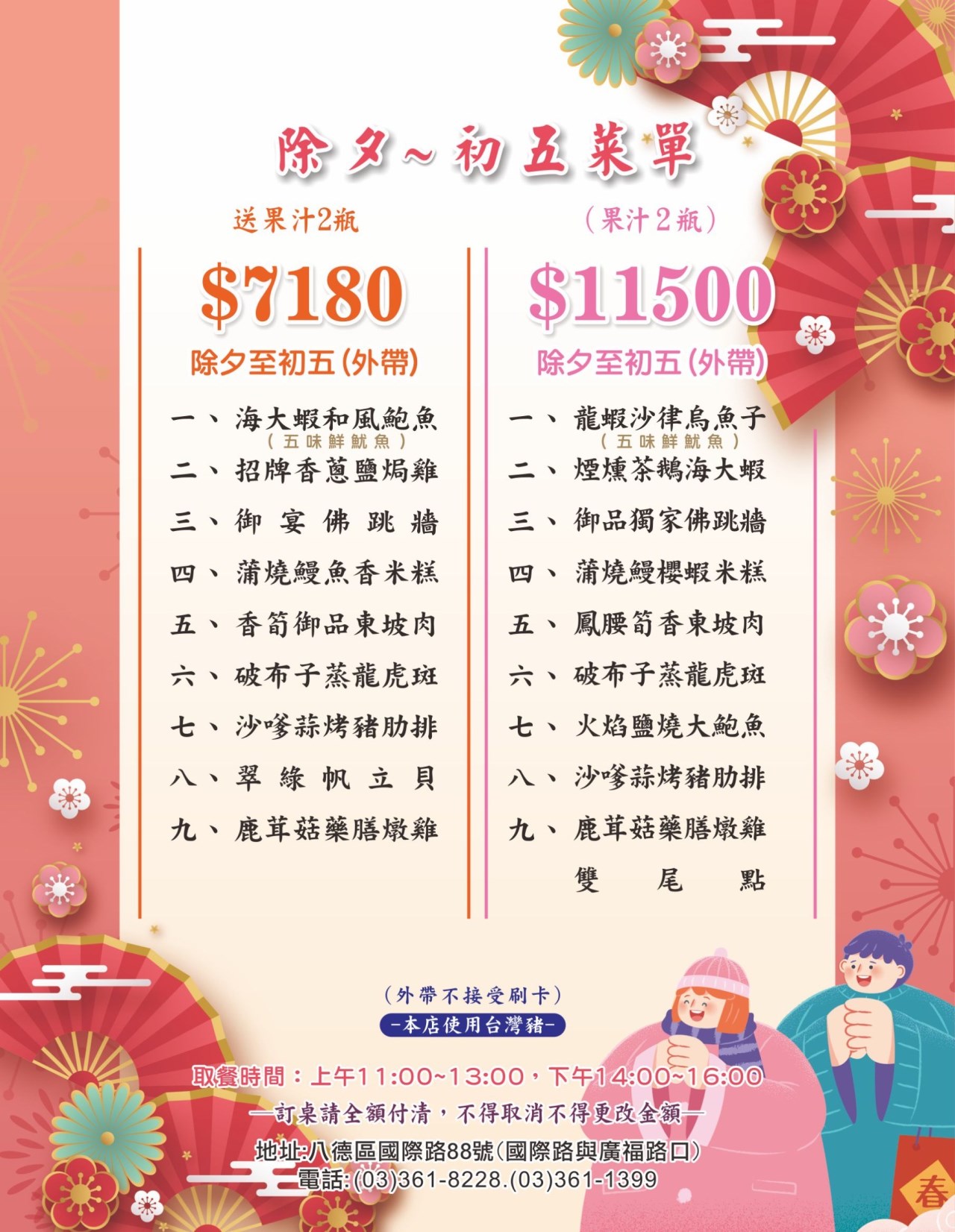 年菜菜單(除夕~初五外帶)