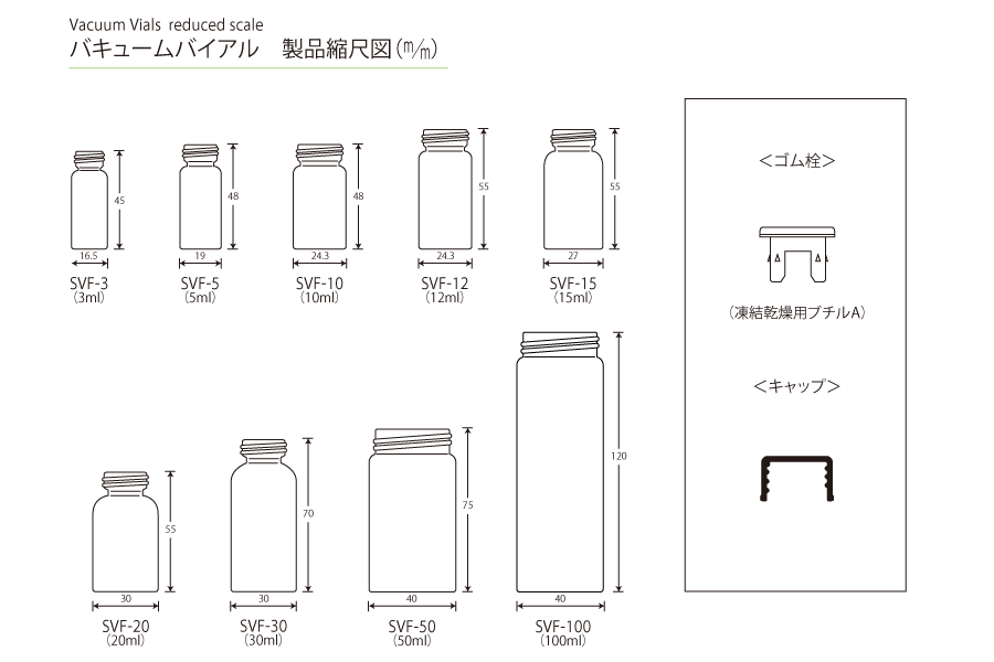 ● 搭配耐熱耐冷的瓶蓋與冷凍乾燥用橡膠塞,可應用於多種用途,如冷凍乾燥製劑或標準液保存等。