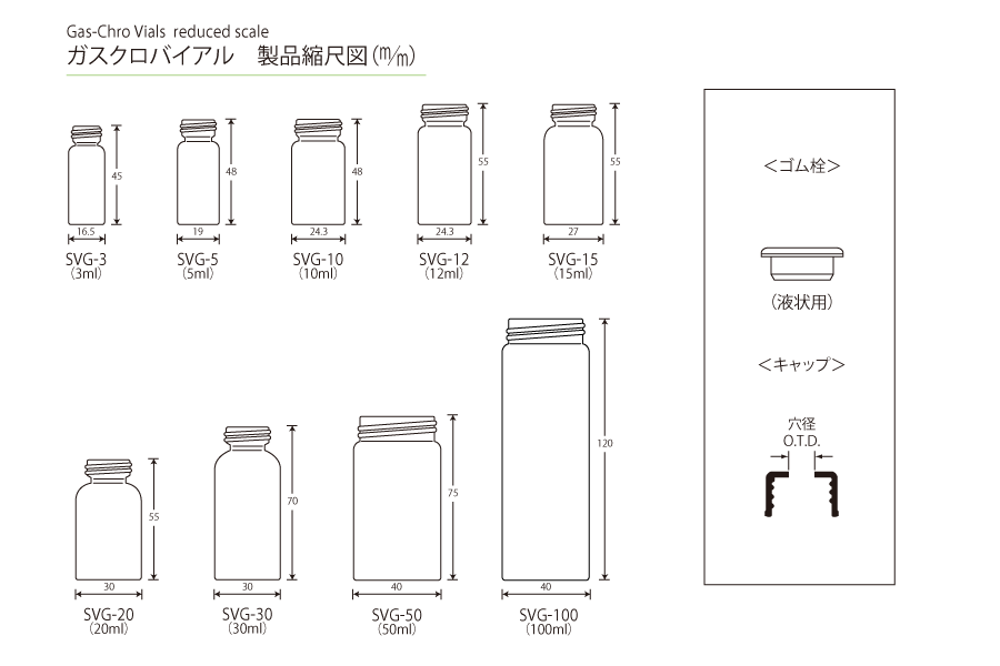 用於氣相層析(GC)、液相層析(HPLC)等取樣容器,也可用於製劑保存等用途。