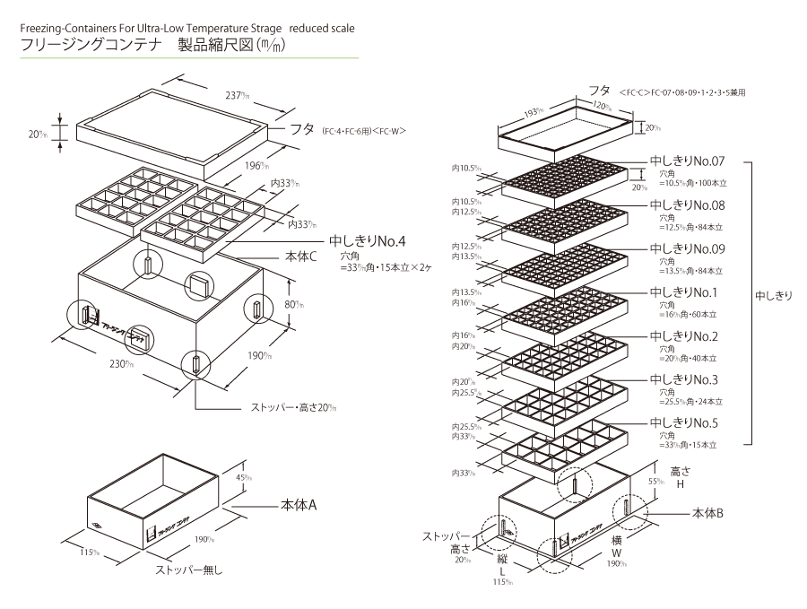 ※ 可搭配專用的透明特殊合成樹脂製容器蓋(FC-C、FC-W)使用,以防止結霜【另售】。