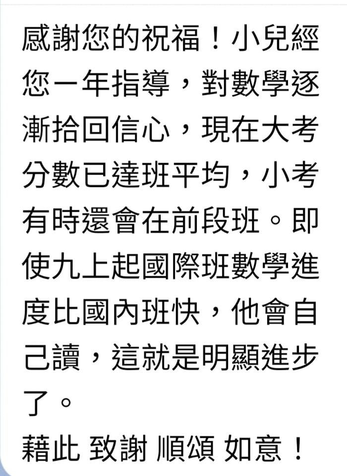 私立東山國中 數學84分進步到100分 陳*耀 私立新民國小畢業
