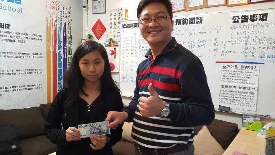 上圖兩位 台北市立成淵國中女生 母親睿智 國中先修選擇簡杰 簡鸞德老師親授班 跟著私校學生一起上課 進度超級超前 民國108年 錄取北北基第一志願北一女中