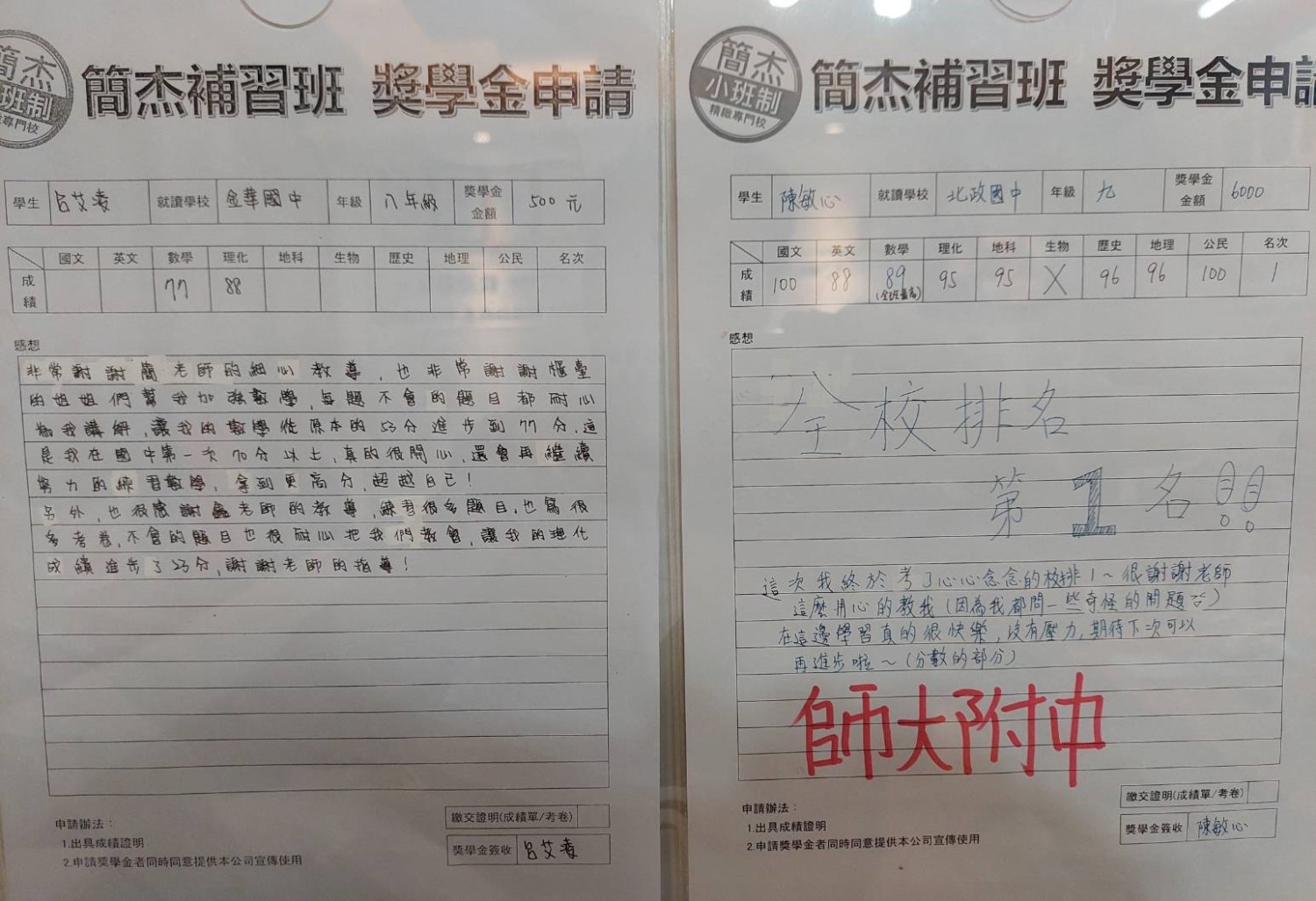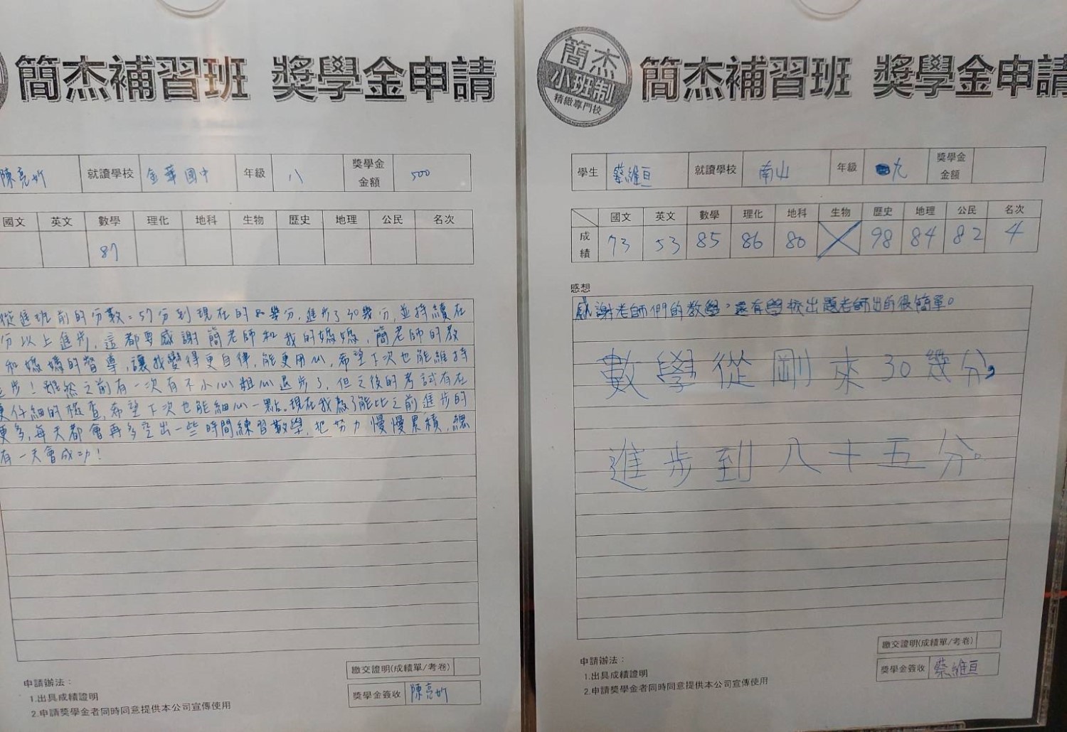 從國中數學不理想到段考100分常勝軍是來自簡杰數學培訓。