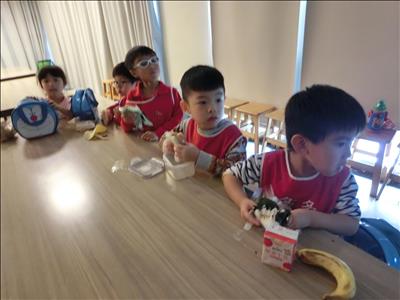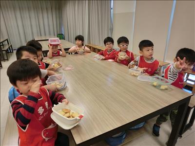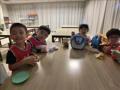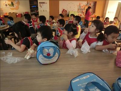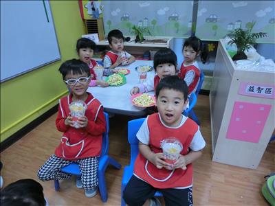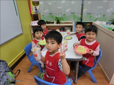 回到學校後與大家一起吃爆米花饗宴,大家都吃得很滿足,很快樂!