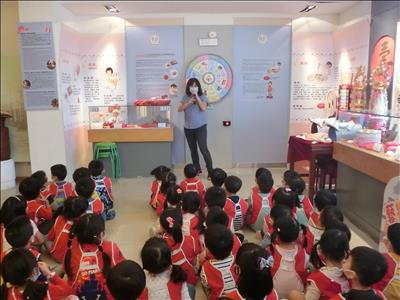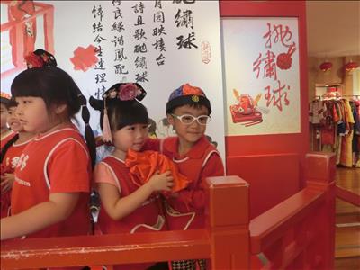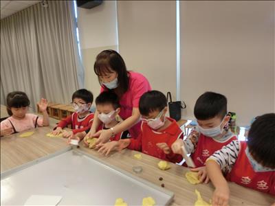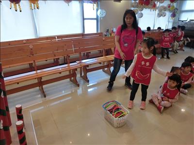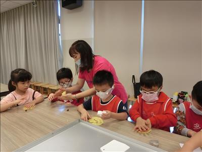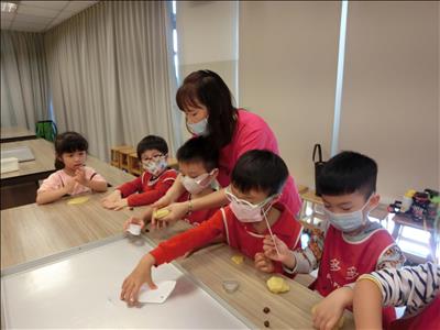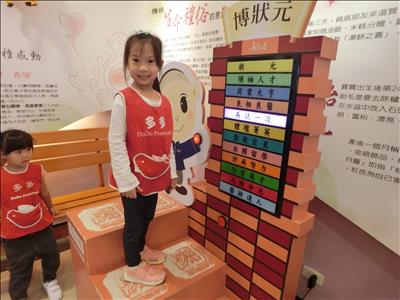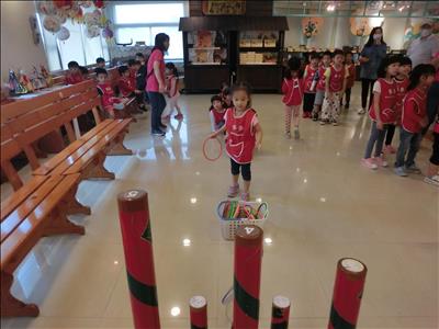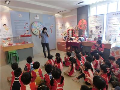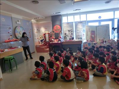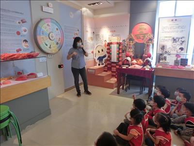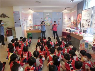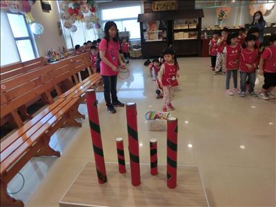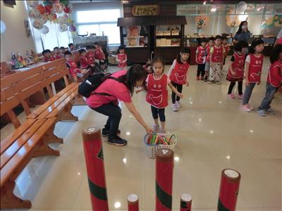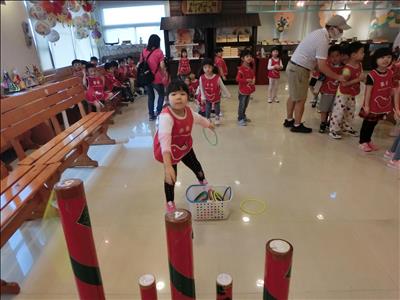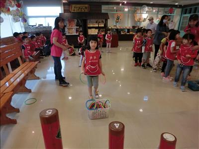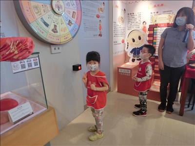 在導覽阿姨細心介紹下,讓我們認識台灣傳統禮俗呢~還有好玩的手工餅乾DIY,玩套圈圈遊戲~
