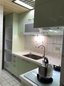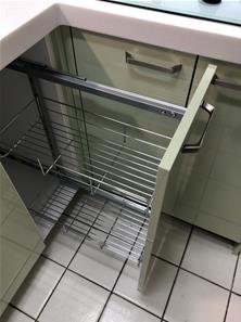 不鏽鋼鵝頸龍頭、單槽、緩衝側拉調味組、緩衝鋁抽、緩衝抽盤