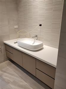 防水發泡桶身(素白)、六面霧烤門板、賽麗石檯面