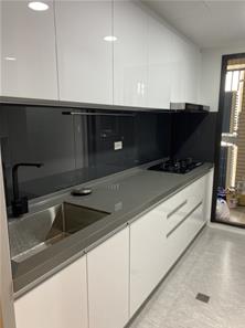 L型兩用龍頭、KL-9467方型槽 、緩衝鋁抽、緩衝側拉、LED櫥下熱感應燈(白光)、5mm烤漆強化玻璃、緩衝食品高身拉架