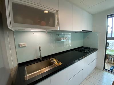 不鏽鋼鵝頸龍頭、KL-167方型單槽、緩衝拉藍、緩衝鋁抽、緩衝側拉調味組、5mm烤漆強化玻璃