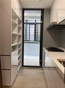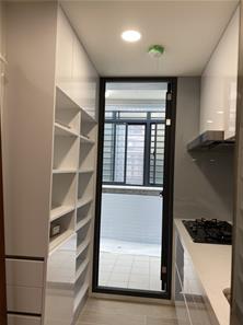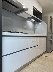 冷、熱、RO三用不鏽鋼龍頭、KL-101海灣造型單槽、緩衝鋁抽、緩衝拉藍、5mm烤漆強化玻璃
