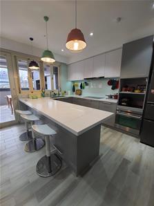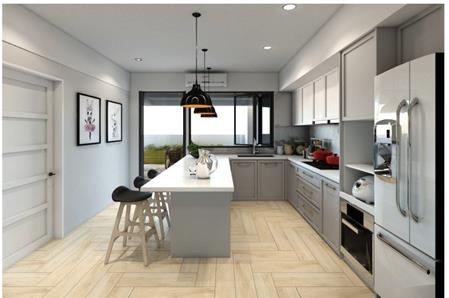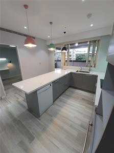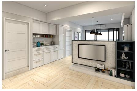 使用建材:木紋磚、鋼刷梧桐木、鋼烤、石英石、訂製家具