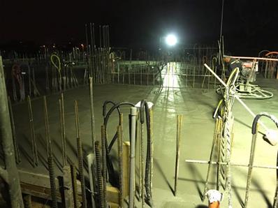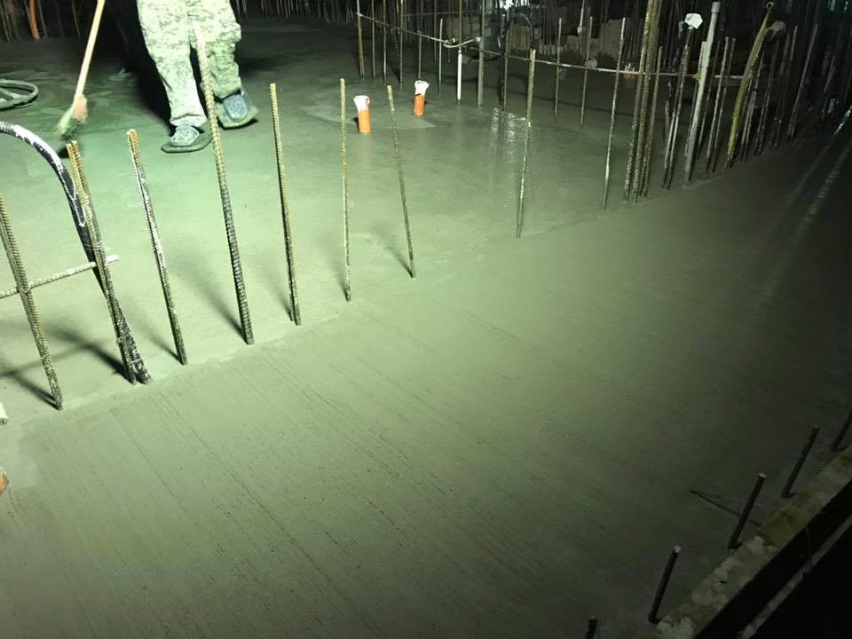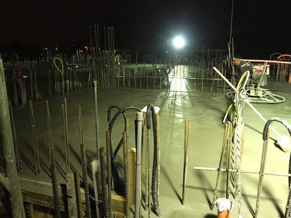 昨天下午開始進行一樓頂板及牆面灌漿工程(使用4000磅台灣水泥混凝土),等待水分蒸發將凝結後,緊接著上場的是粉光拉毛作業挑燈夜戰,工程直至午夜十一點半完成