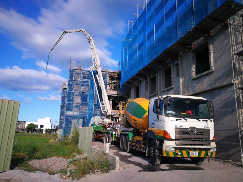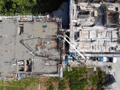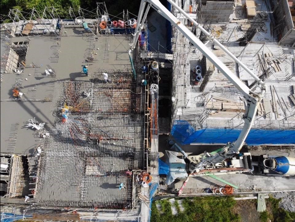 經過幾日的豔陽天還有颱風挾帶而來的下雨天,在工作人員共同的努力下,目前三樓頂板及牆面灌漿工程已順利完成⠀