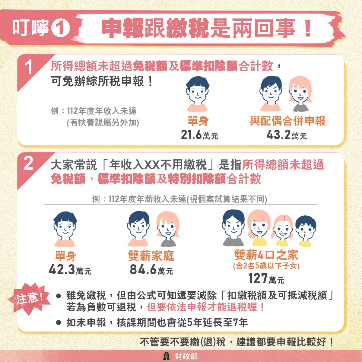 但是即使不需要繳稅還是必須依法申報所得稅,避免因爲申報而錯失領退稅的機會。