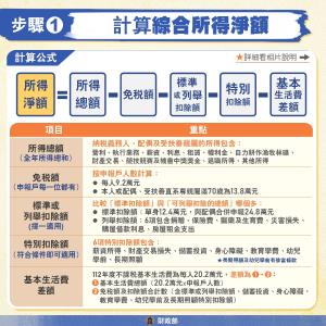 步驟2:套入公式=「基本生活費總額」–「 免稅額」–「 一般扣除額」–「 特別扣除額(不含薪資所得特別扣除額、財產交易損失特別扣除額)」。