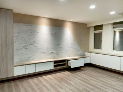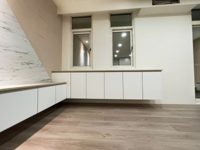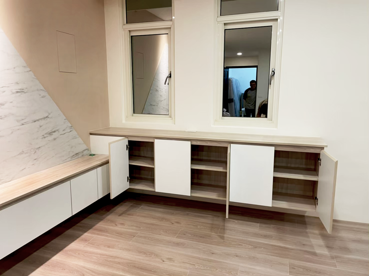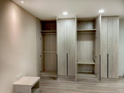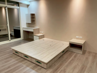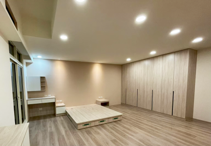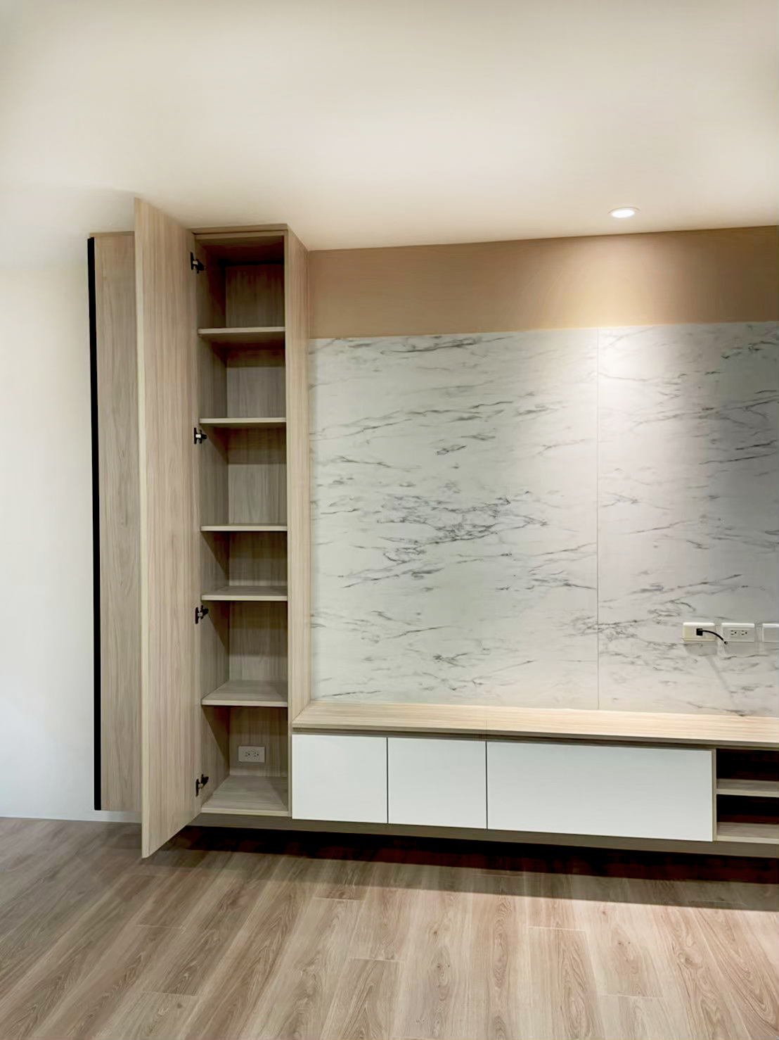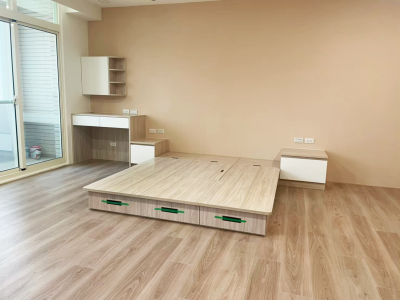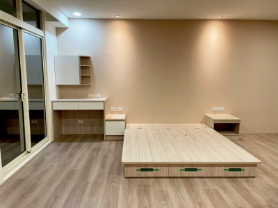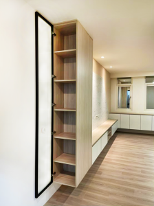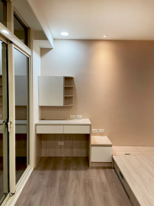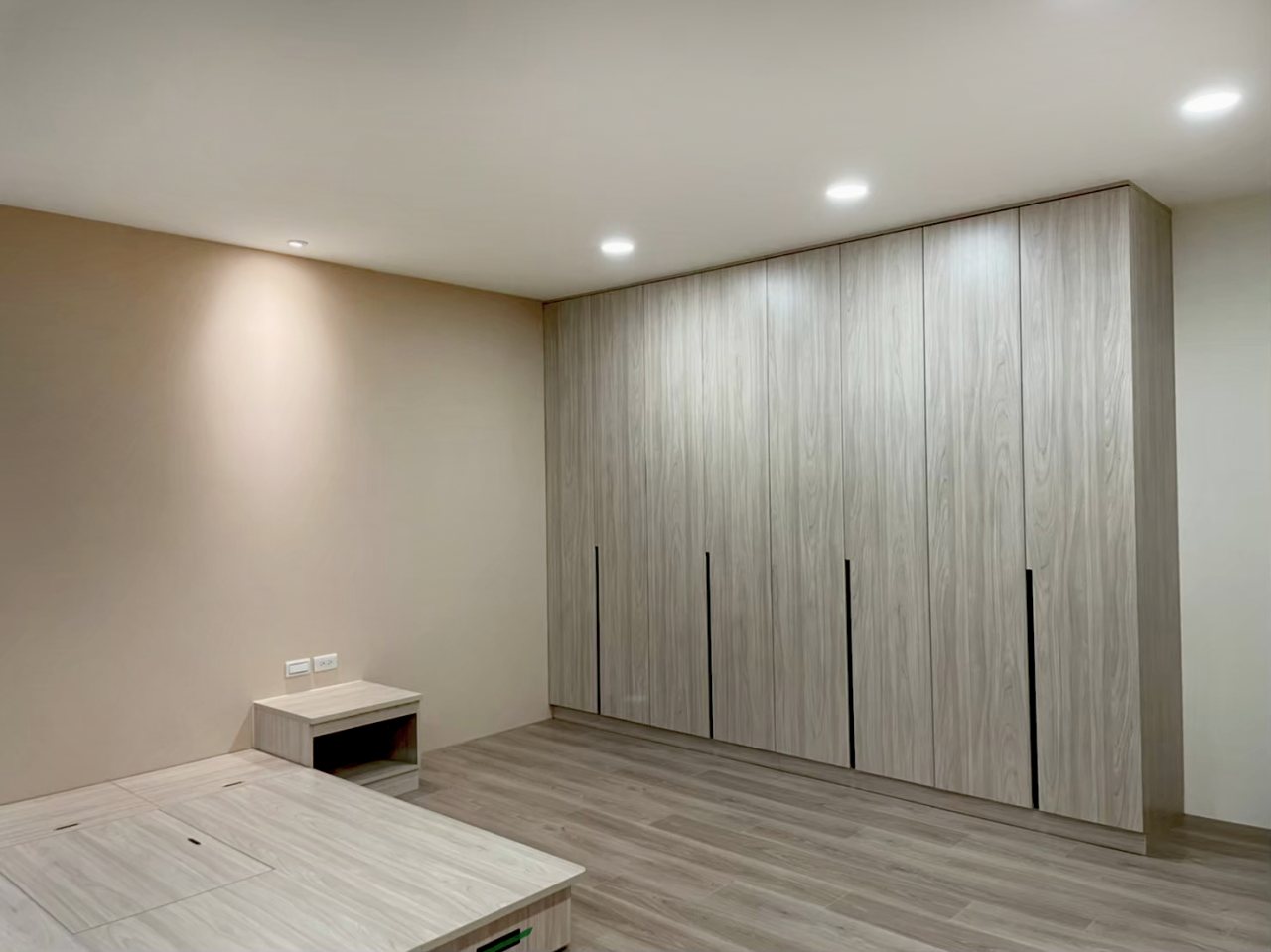 原木風滿牆衣櫃搭配隱藏內嵌式把手