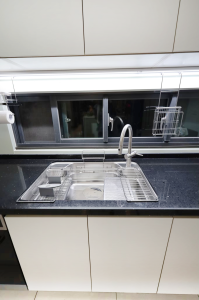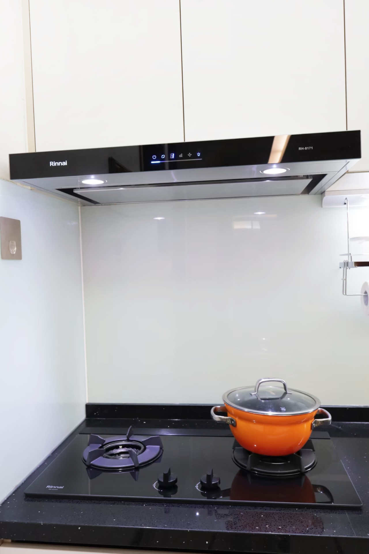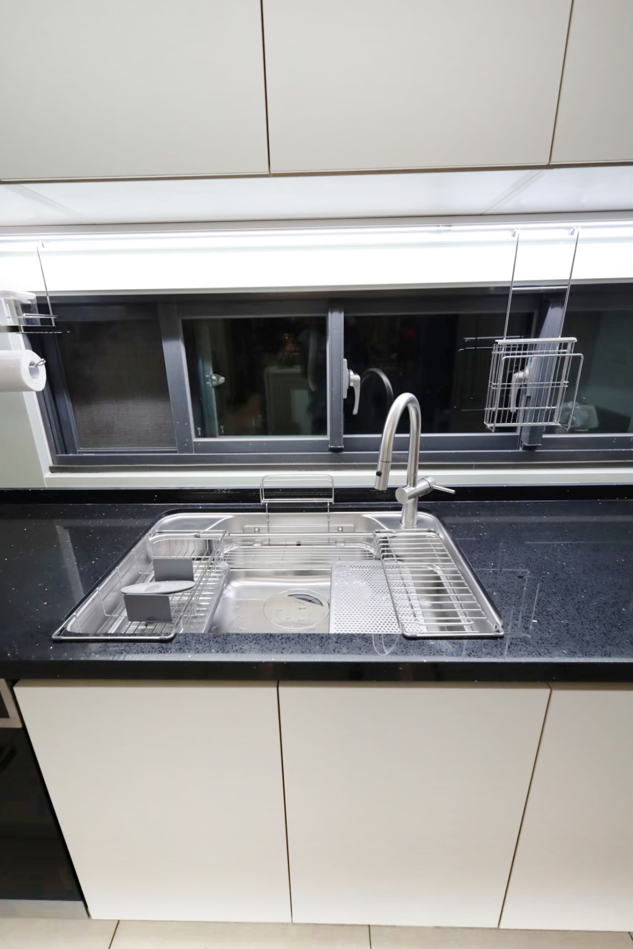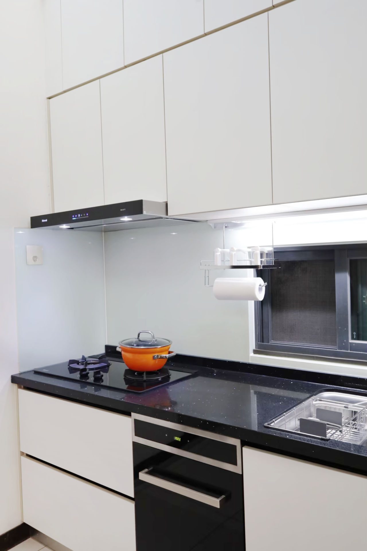 與牆面同色系的廚櫃,加上乾淨俐落的線條