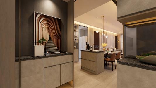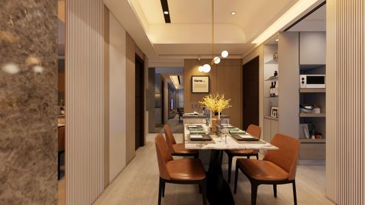 中島與餐桌的連結不僅提升了空間的功能性,更營造了溫馨舒適的用餐體驗。既實用又充滿了生活的氣息,使每次用餐都成為一種愉悅的享受。