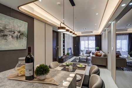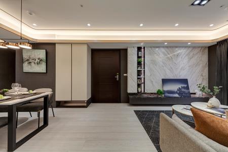 考量小家庭階段性需求,可滿足交誼的開放串流加上三房配置恰到好處,而針對委託方偏好沈穩、內斂且富細節、質感的新宅樣貌,後續也透過空間比例拿捏、有助舒緩的和諧演色、精湛工藝和異材質組構等技巧,逐一完美實踐!
