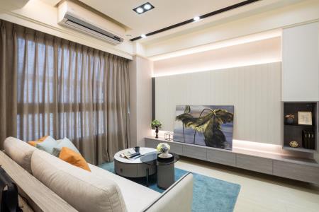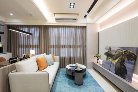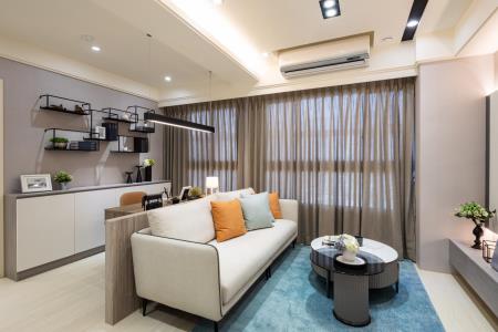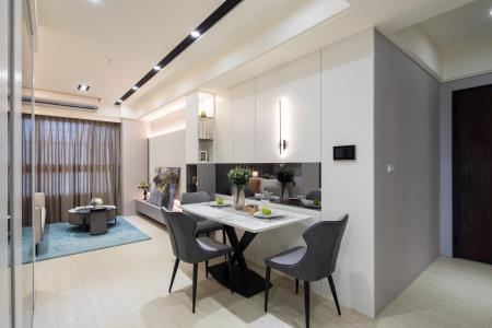 因小家庭需求,將原三房調為高坪效2+1房,以簡潔、明淨,收納,為靈感三核心,融合健康選材、清雅色系、線條美學等元素,彰顯設計前後呼應,玄關入內步步有景鋪敘,展現細節嚴謹。