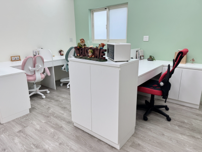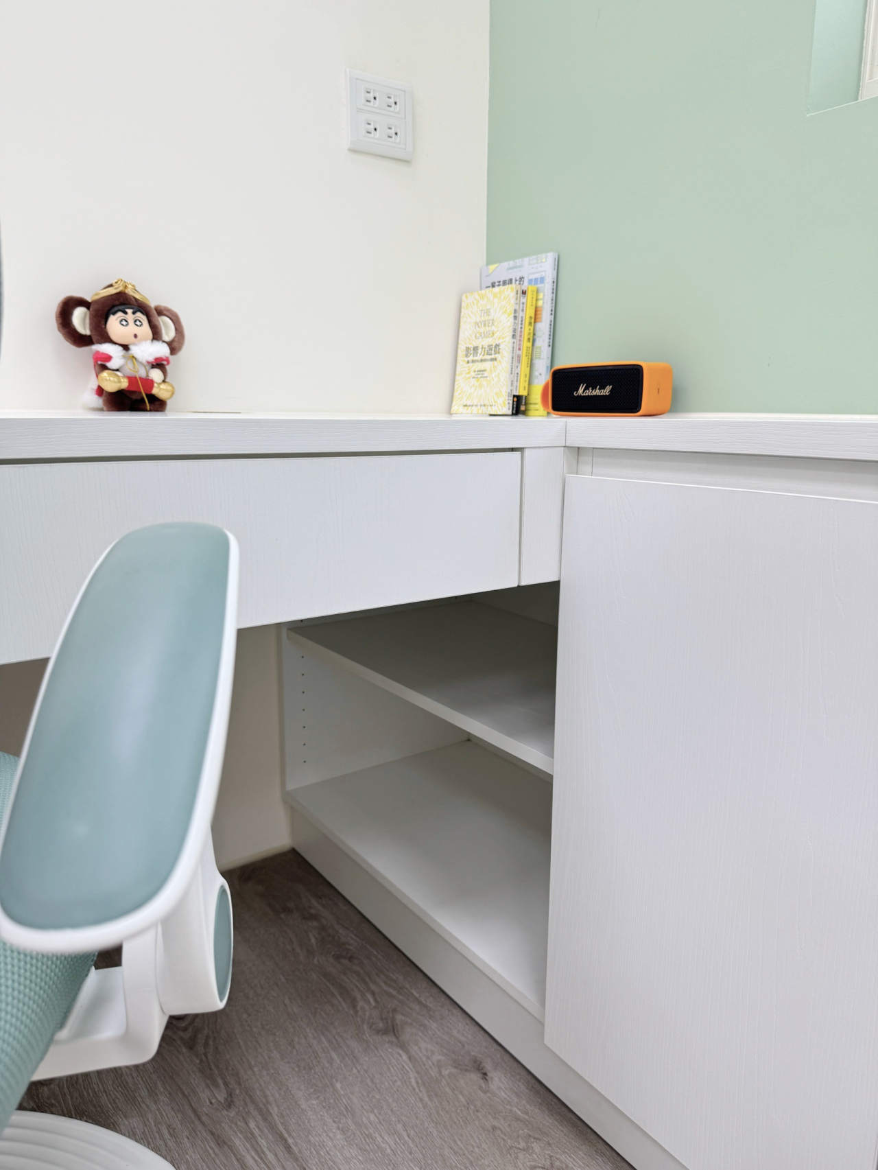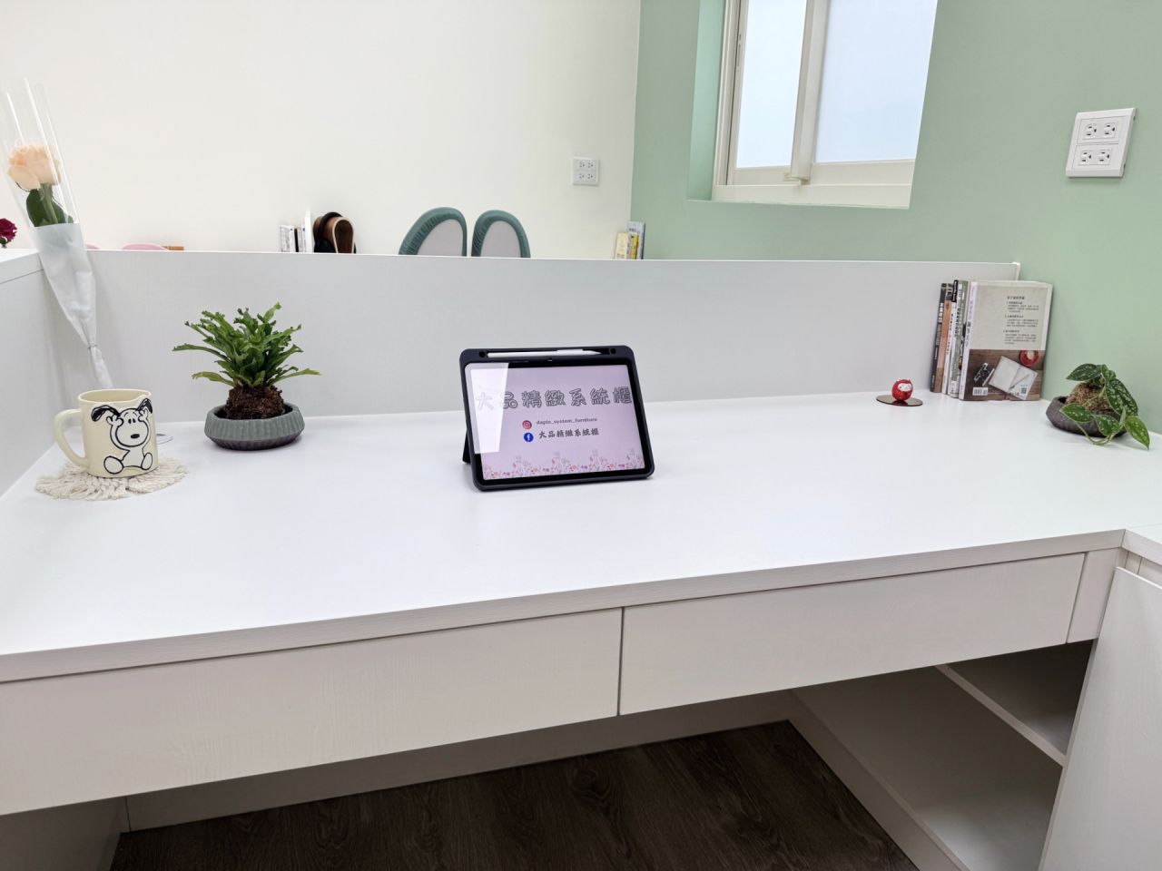利用系統板材訂製而成的辦公桌 依照空間長度、所需要的桌面寬度 讓工作更加流暢.ᐟ.ᐟ