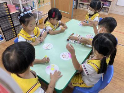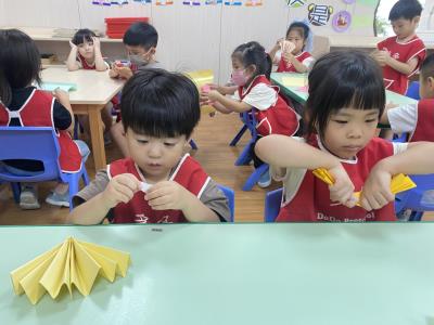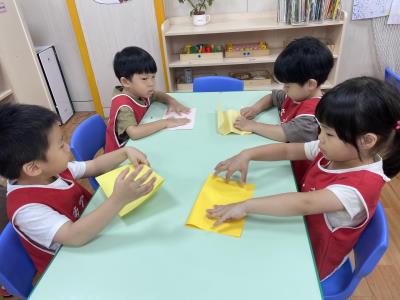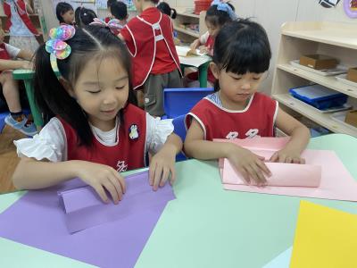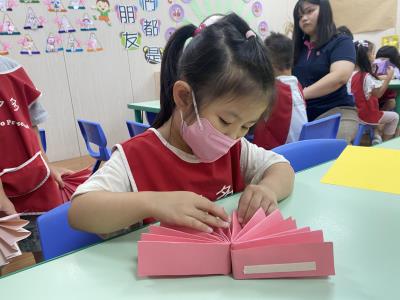 114.09.08~09主題活動~分享友情花朵~請小朋友們畫下想和朋友分享的快樂事物,老師使用粉彩紙教大家用摺紙方式,做成一朵朵美麗的快樂花朵,要在教室布置"友情花園"喔~