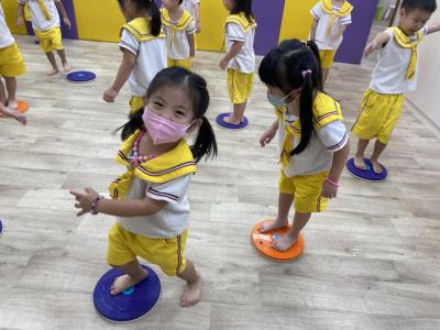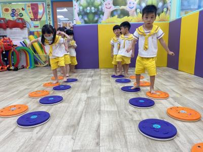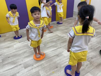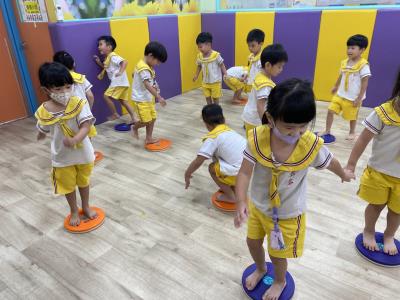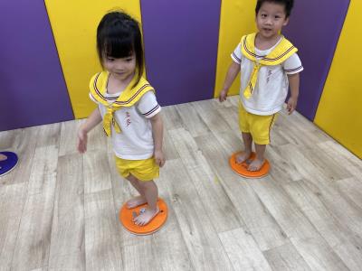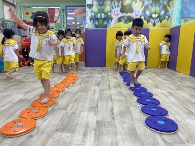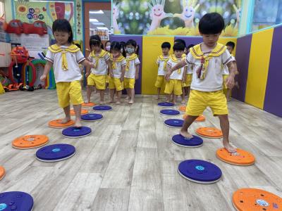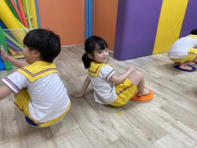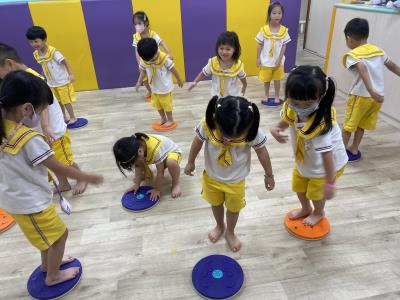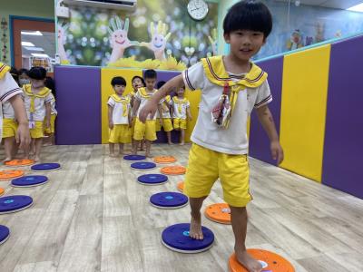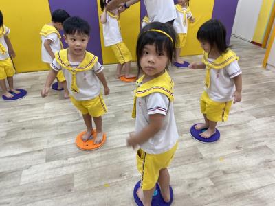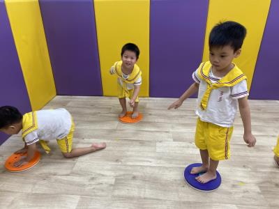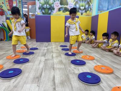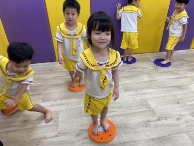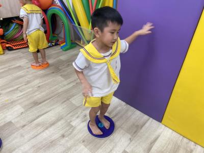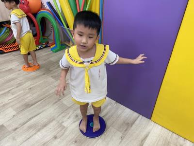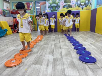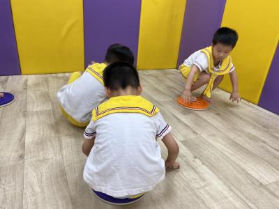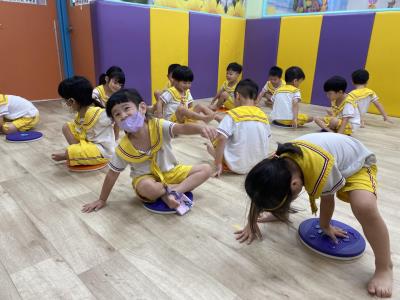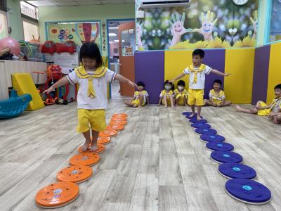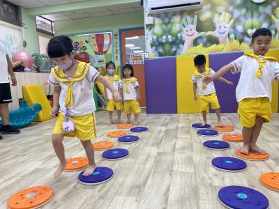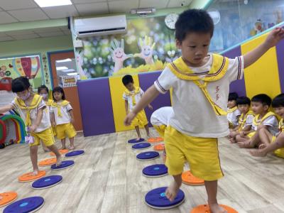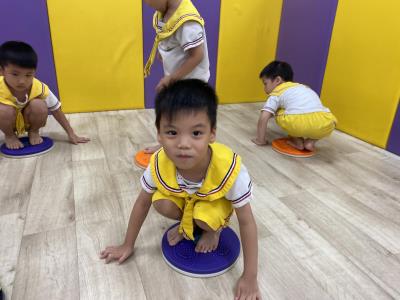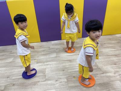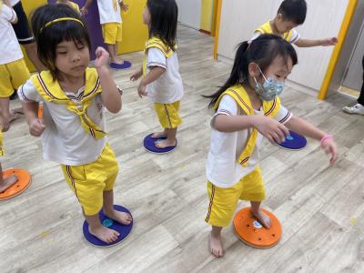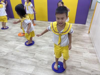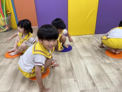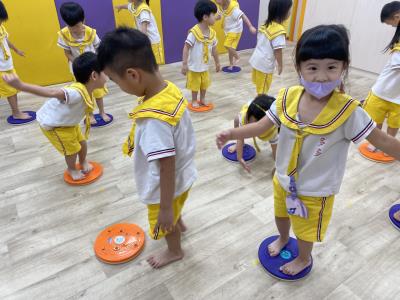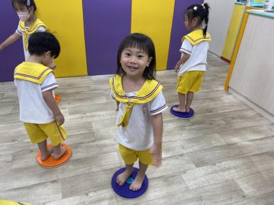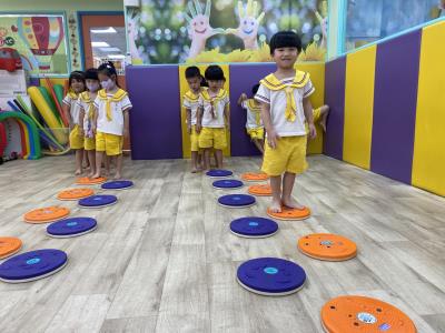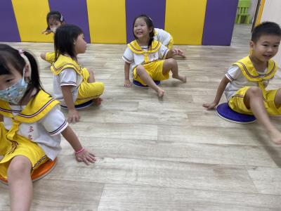 114.09.11體能活動~全民運動王(妞妞盤)透過妞妞盤的遊戲活動,加強小朋友的平衡感與全身協調能力。剛開始踩上去發現底盤會動,少部分小朋友有點怕怕的,習慣之後越玩越上手啦!