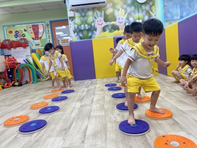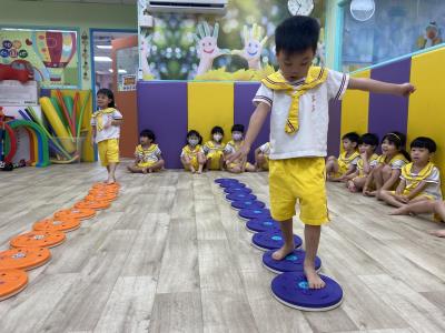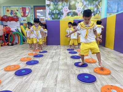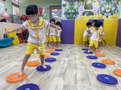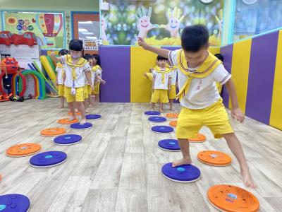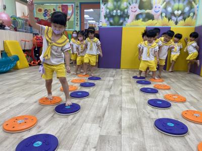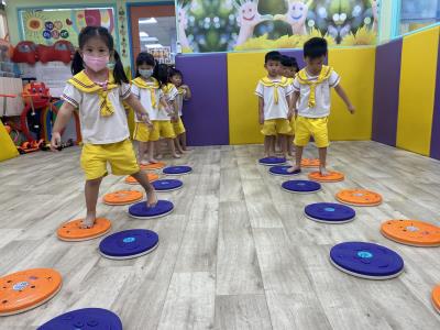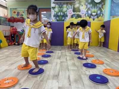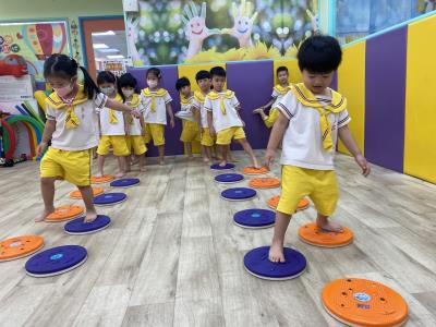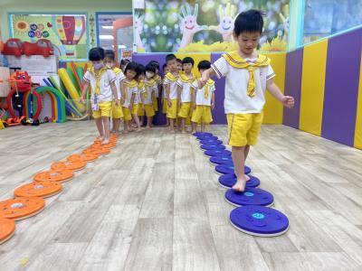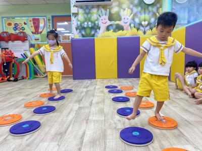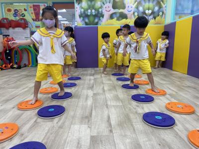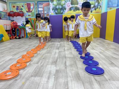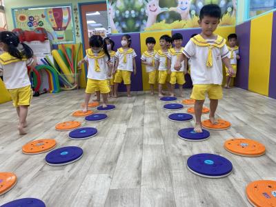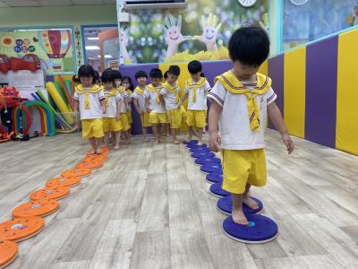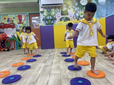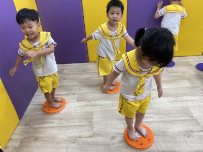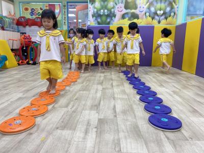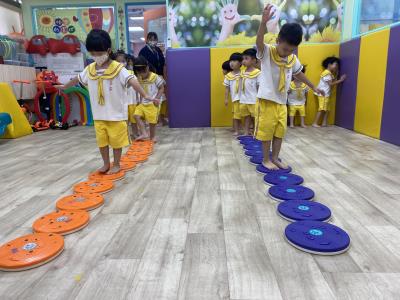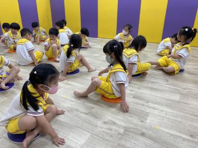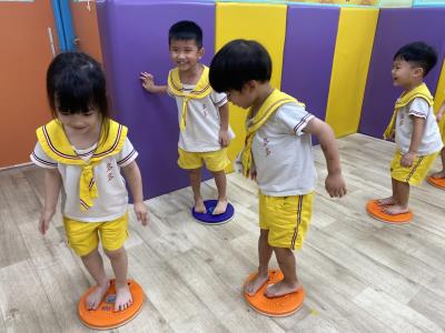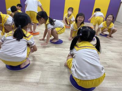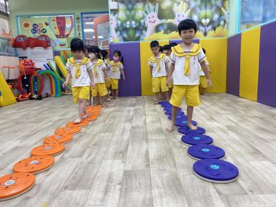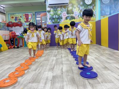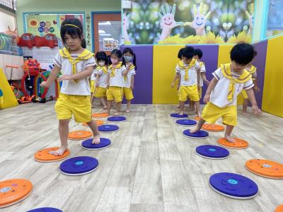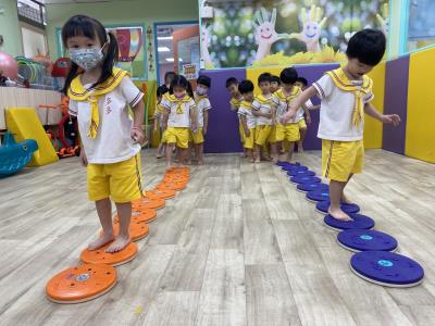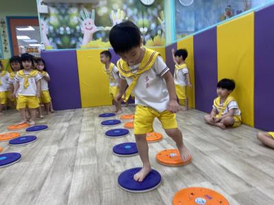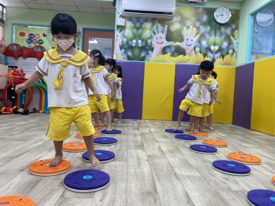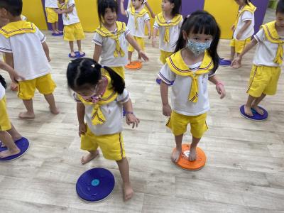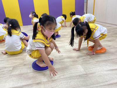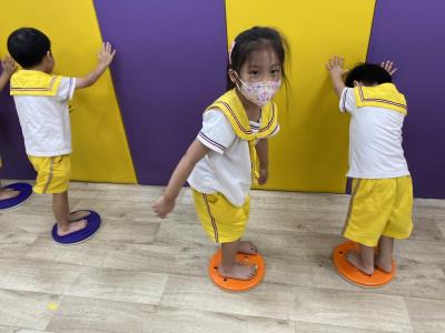 114.09.11體能活動~全民運動王(妞妞盤)透過妞妞盤的遊戲活動,加強小朋友的平衡感與全身協調能力。剛開始踩上去發現底盤會動,少部分小朋友有點怕怕的,習慣之後越玩越上手啦!