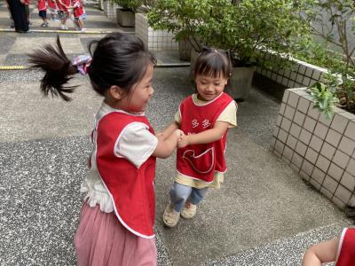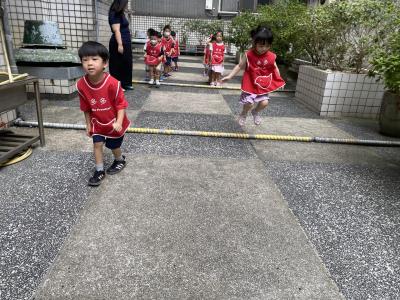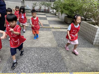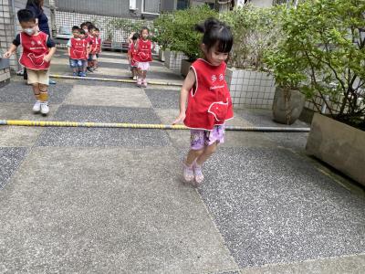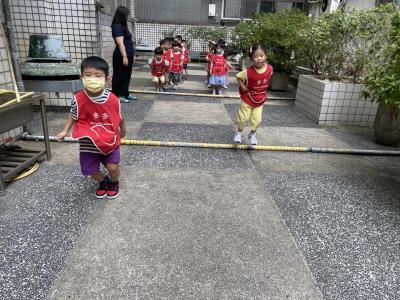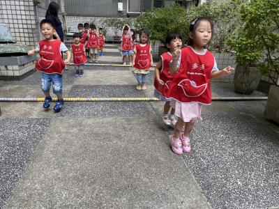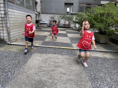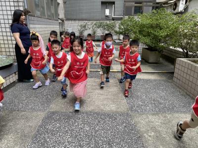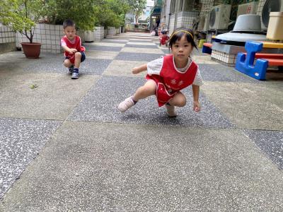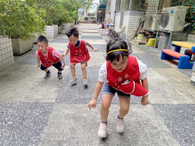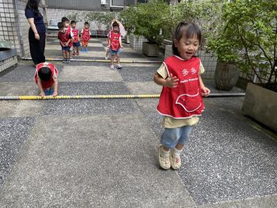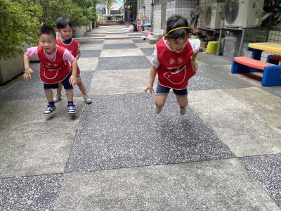114.09.19戶外大肌肉活動~今天的戶外時間,寶貝們一起動起來啦! 大家先在操場上開心地跑步,氣氛熱鬧極了 。接著進行直線跳躍比賽,還有「好朋友手牽手一起跳」,孩子們跳得整齊又有默契 。最後我們玩起了經典遊戲「老鷹抓小雞」,笑聲、尖叫聲此起彼落,充滿了歡樂!