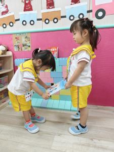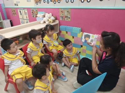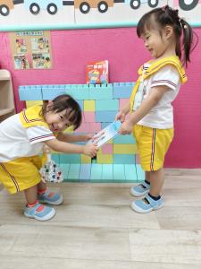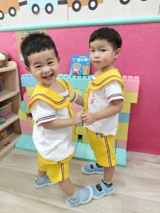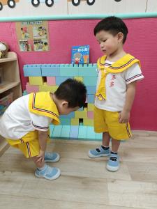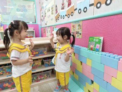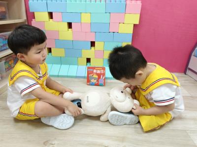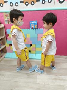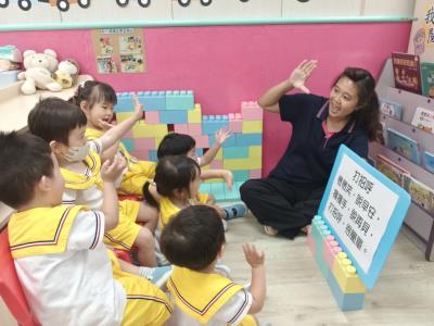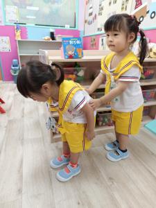 114.09.18主題活動~{有禮貌打招呼}唱唱跳跳學打招呼,孩子們還模仿著動作並大聲說出[你好,謝謝,對不起].