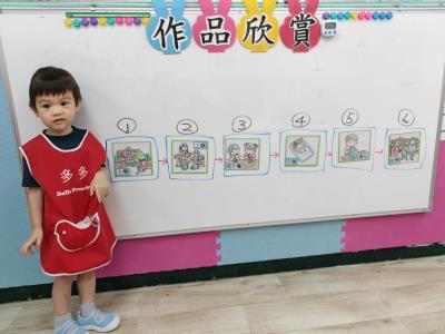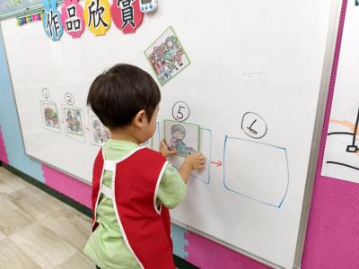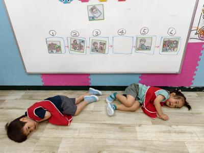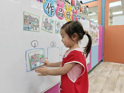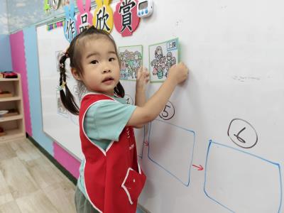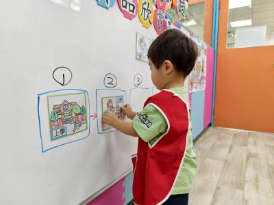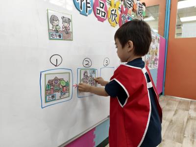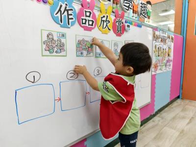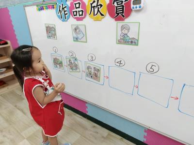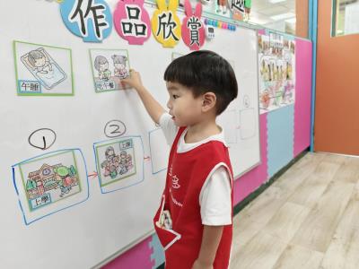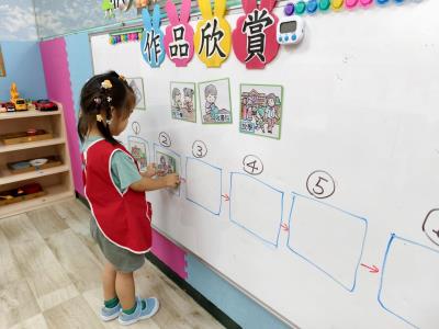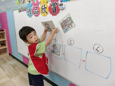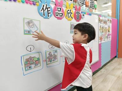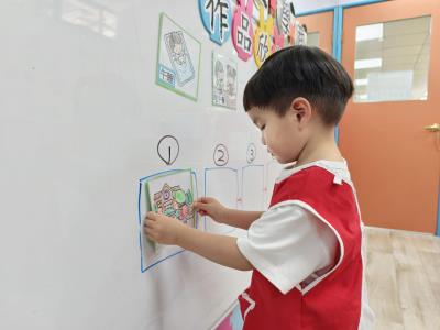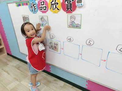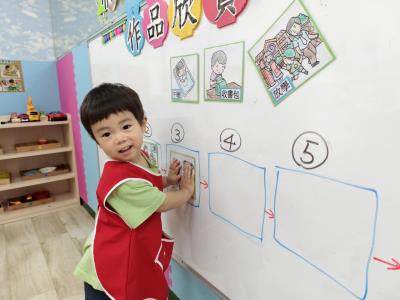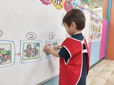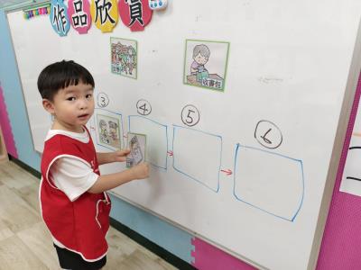 114.09.24主題活動~{一天校園小旅行}排排作息圖卡,邊排列順序邊唸著還模仿動作,真是可愛極了!
