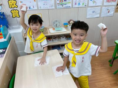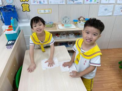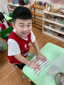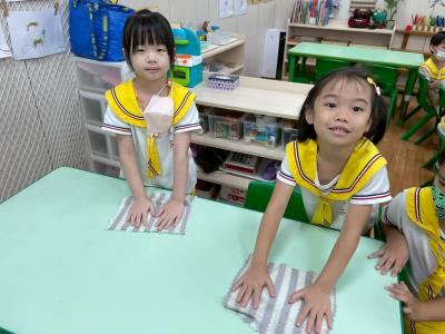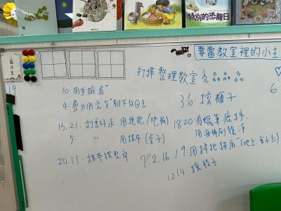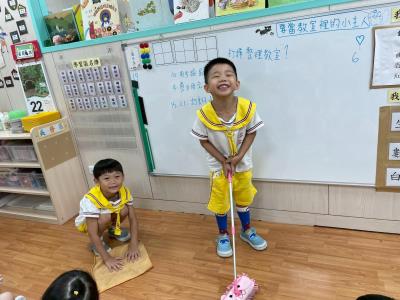 114.9.22【教室亮晶晶】:每天能有一間乾淨明亮的教室,並不是「魔法」自己變出來的,而是因為孩子們一起努力維護!要怎麼做才能有乾淨的教室呢?又需要哪些工具呢?乾淨的教室,不只是大人的責任,更是孩子們一起學習、一起付出的成果。這就是葡萄大班每天亮晶晶的秘密!
