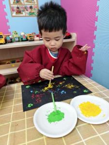 114.10.07~08慶祝國慶日~美勞創作運用水彩蓋出繽紛煙火,貼上{雙十}與自己的照片,完成可愛的國慶作品.